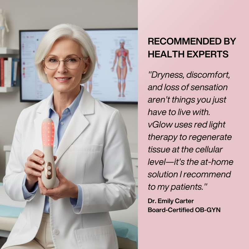 Yes. The vGlow is designed for external use around the vaginal area and is completely safe when used as directed. It uses clinically studied red and near-infrared light wavelengths — the same technology used in professional women's health clinics. It contains no chemicals, hormones, or invasive components. Always follow the included usage guide for best results.