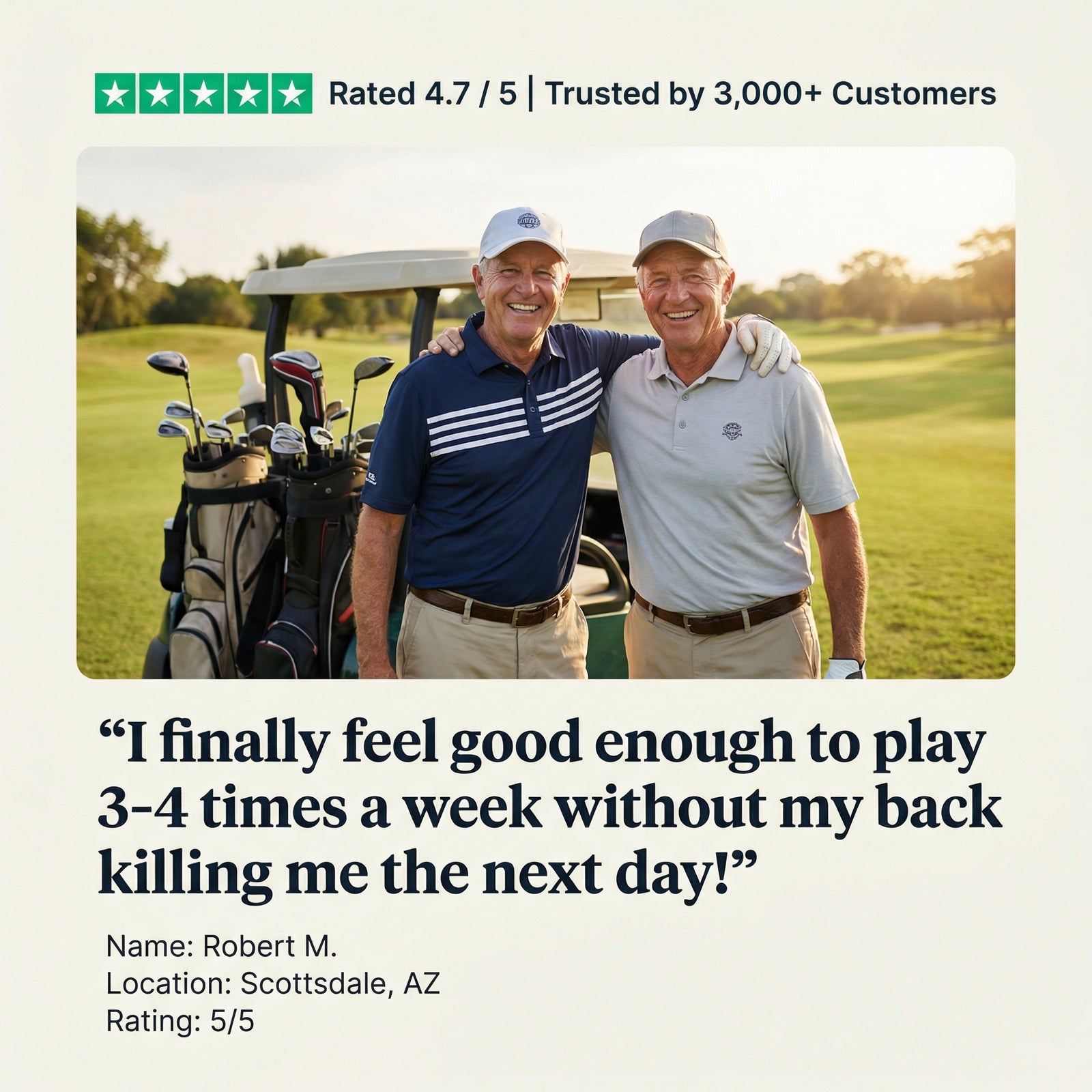 💬 "I used to dread the drive home after a round — my back would lock up before I even got to the car. After 3 weeks on this, I'm playing back-to-back days again." — Robert K., 54